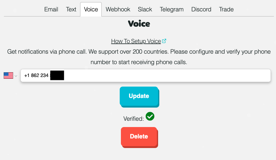 We offer different types of notification methods for you to get notified when an alert or trade triggers.
